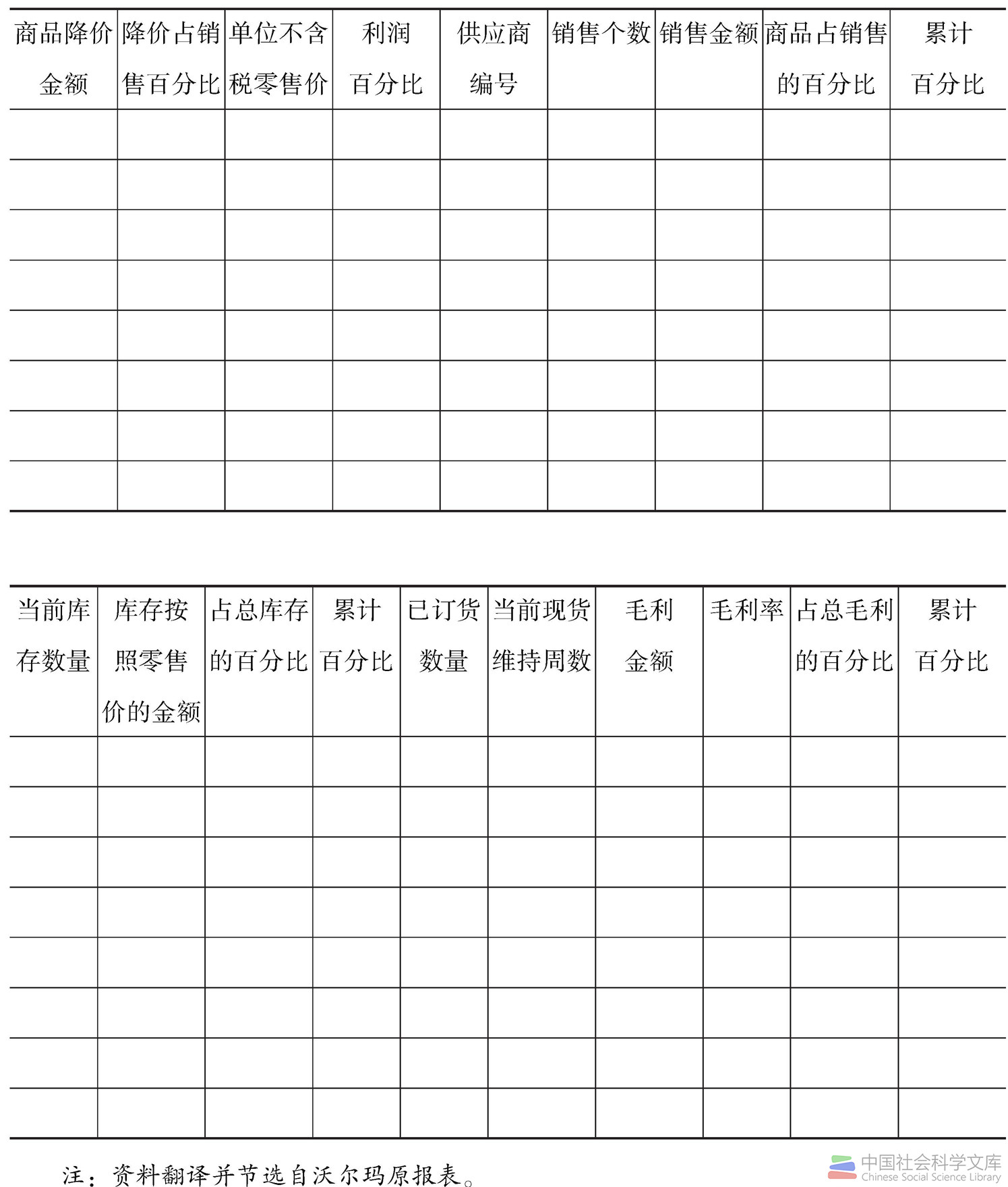 再比如,沃尔玛在其“零售链”(Retail Link)系统中的“80/20销售报告”,如表0-1所示。沃尔玛与其他的零售商不同,他们更加强调与供应商的紧密合作,“零售链”和“品类管理”是这种思想很好的体现,他们希望把对每个商品的管理和对分类的管理更多地交给供应商来做,他们尽量提供各种销售数据支持。“80/20销售报告”是沃尔玛经过多年的经营管理实践而开发的“零售链”中对商品的销售情况进行定期分析的报表。在“80/20销售报告”中,沃尔玛以供应商为单位,定期向供应商提供其所有产品的销售数据,并按照基本的“80/20”原则,分别管理高销量商品和其他低销量商品,对于商品的管理内容就如表中列出的包含商品毛利、销售量、库存等项目。沃尔玛的根本目的是真心希望供应商能定期利用这份报告中的各种数据和指标,对自己的产品定期进行分析,及时发现销售中的问题,并尽快回馈给沃尔玛,然后双方共同商议解决方法。“80/20销售报告”很好地体现了沃尔玛“与供应商合作”的理念,即沃尔玛认为他们的每个采购人员都要管理几千个单品,因此他们不可能随时了解每个单品、每周、每家门店的销量、毛利、库存等情况,他们希望供应商能利用“80/20销售报告”管理好自己的产品销售,那么最终当然就可以实现双赢的结果了。如果我们仔细想想就会发现一个问题,“80/20销售报告”是作为零售商的沃尔玛开发的,但是却是沃尔玛提供给供应商应用的,当然沃尔玛的采购人员也要看,那么“80/20销售报告”到底是为谁设计的呢?是供应商,还是零售商?其实我们很清楚——供零双方都要使用它。