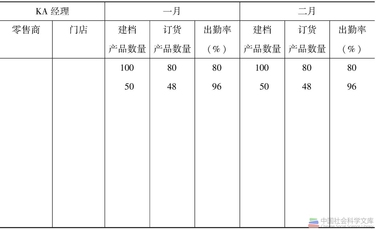 我们可以再举一个家乐福的例子。在为供应商设计的《产品组合设计和产品优化》的培训模块中,产品出勤率的检查是产品优化中一个重要的内容2492459,尤其是对零售商来说,考核商品的出勤率更加重要。但是,在这方面供应商往往缺乏更深刻的认识和更好的管理方法。如表0-2,这是从零售商的商品出勤率管理报表中演化而来的,家乐福每月会分析每家门店的商品出勤率,即每家门店在上一个月有库存、有销量的单品数量占到商品总数量的百分比,其考核单位是各个营运部门,比如饮料课、鞋课、文化用品课等。如果某家门店某个部门的商品出勤率太低,那么就说明这家门店的商品缺货严重,很多商品不会出现在货架上,而且造成商品出勤率太低的原因不仅仅是订货和库存管理的问题,还可能是商品结构不合理导致的门店不愿意订货等原因。因此,利用商品出勤率管理,可以及时发现商品的缺货和商品结构是否合理等问题。其实,对于供应商来说也是一样的,如果某供应商在家乐福或者沃尔玛有100个产品(SKU)在销售,那么到底他们在家乐福或者沃尔玛中,每月有订货的产品占到其总产品数量的百分比是多少;哪些产品经常缺货;哪些产品零售商经常不订货;又是哪些零售商或者门店经常缺货,如此等等,供应商完全可以据此进行深入的分析:为什么某些产品经常没有订货?为什么总是某个零售商的产品出勤率太低?为什么总是某家门店的订货率太低?如果供应商在产品优化管理中进行了更加主动和积极的管理,那么就不用总是处理被零售商清场等尴尬问题了。而且,这样的产品管理当然也会得到零售商的支持,每个供应商都不断优化自己的产品,那么零售商的所有产品不就都得到了优化吗?因此,零售商的商品出勤率的管理思想和方法完全可以稍做修改而变为供应商所用,从而最终使得供零双方都获益。