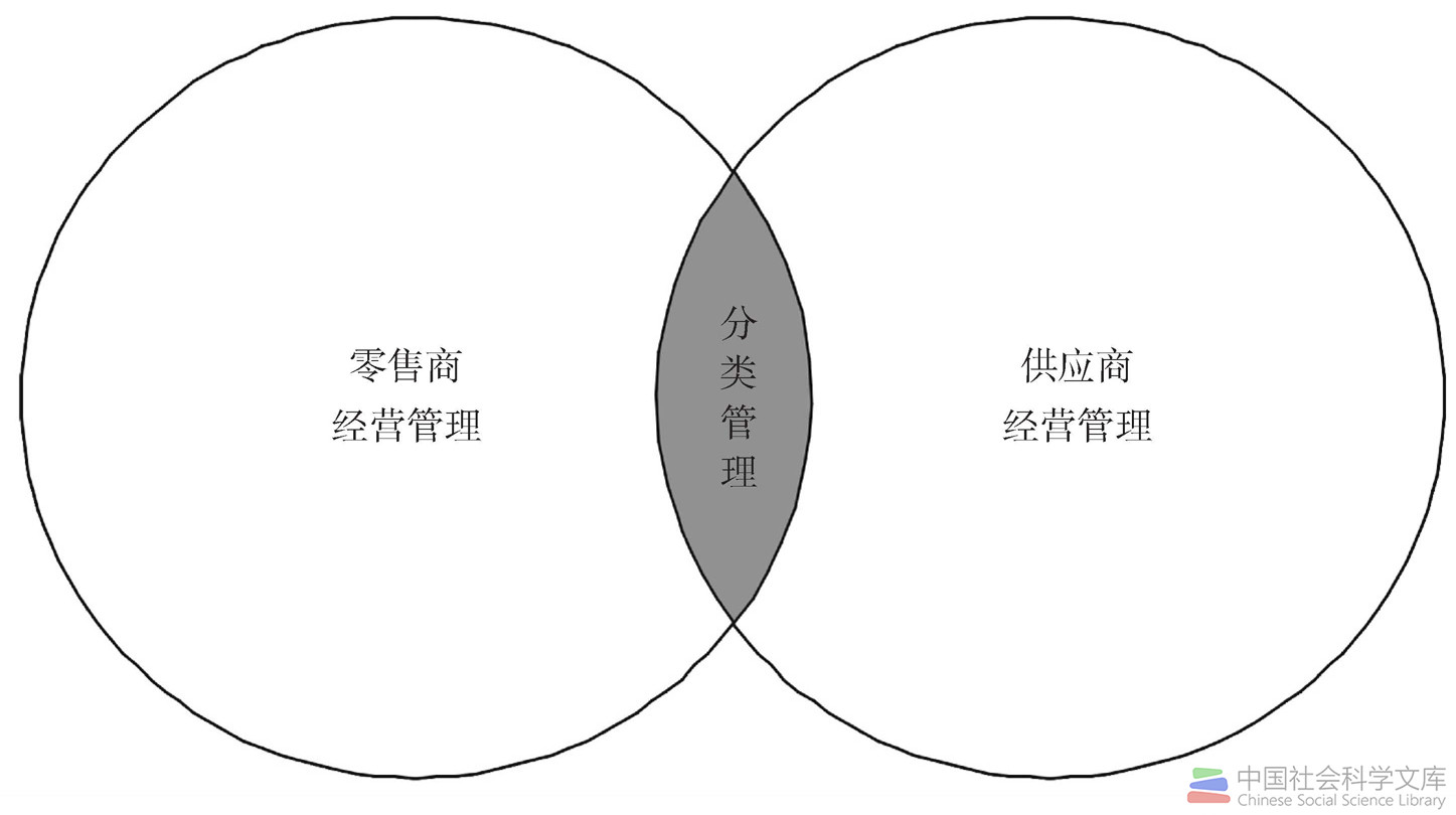 建立在分类管理模式下的供零合作模式并不是虚幻和极端理想化的,它是完全可以执行并能带来效果的。这是因为分类管理是供零双方都能应用而且有必要应用的经营管理模式,在供零双方各自的经营管理中,只有分类管理才可能成为双方的重叠部分,如图0-1所示,而零售商和供应商在其他方面的经营管理内容几乎无法结合。比如,零售商的选址策略是供应商无法理解也不需要理解的,而供应商的产品开发和品牌管理往往是零售商无法触及的管理内容。