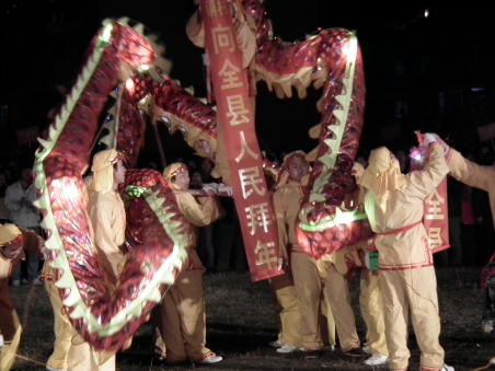 在城步苗乡,春节期间带有娱乐色彩的团拜活动则是“龙狮舞”和“乡村春晚”。