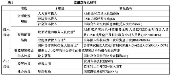 本文从高校科技投入和产出两方面构建高校科技资源配置和科技创新产出的测度指标,分为区域和省际两个层面讨论。高校科技资源配置指的是高校科技人力、科技经费、国际科技交流等各类资源的配置规模、结构和模式②。高校科技创新是指高等学校进行的所有创造和应用新知识、新技术的科学技术活动。本文将资源配置规模和结构的6个变量作为投入变量纳入科技创新效率的分析模型之中,资源配置模式可能在京津冀三地呈现异质性,所以不纳入实证数据分析的模型。统计分析数据来源于2007-2016年出版的高等学校科技统计资料汇编。