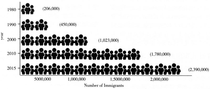 图1 美国印度裔移民的人数统计(1980-2015年)④