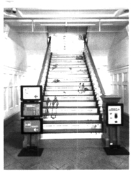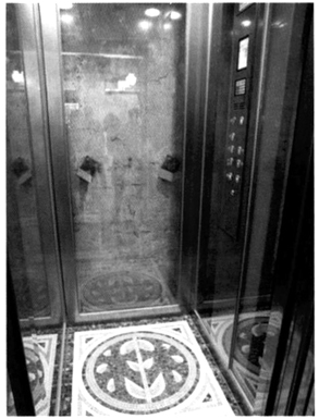 图9 林百货透明电梯轿厢内部,可见原电梯的内部零件。(摄影林孟怜)