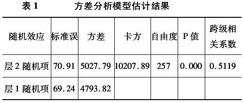 在进行两层线性模型分析之前先要对方差分析模型(零模型)结果进行估计,检验各层方差的比例是否显著,从而决定是否需要采用两层模型进行估计。