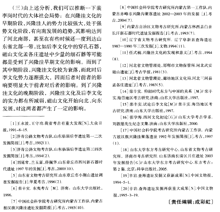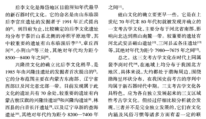关键词:后李文化 兴隆洼文化 磁山文化 文化关系