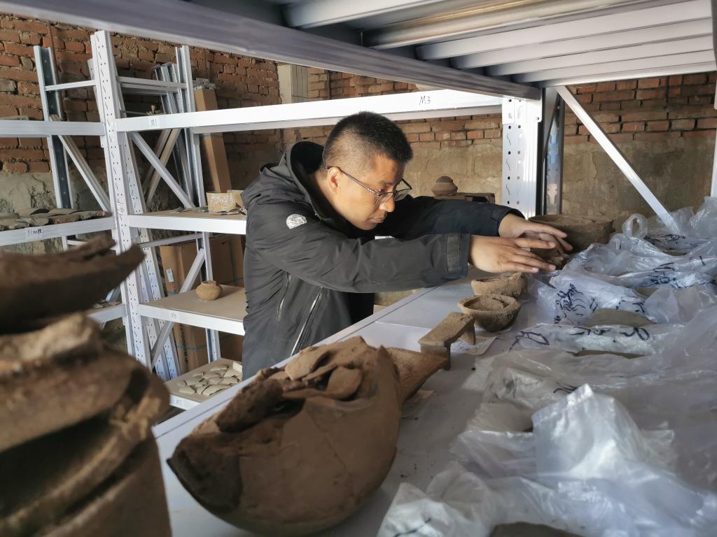 考古人员整理出土文物。图片来自受访者