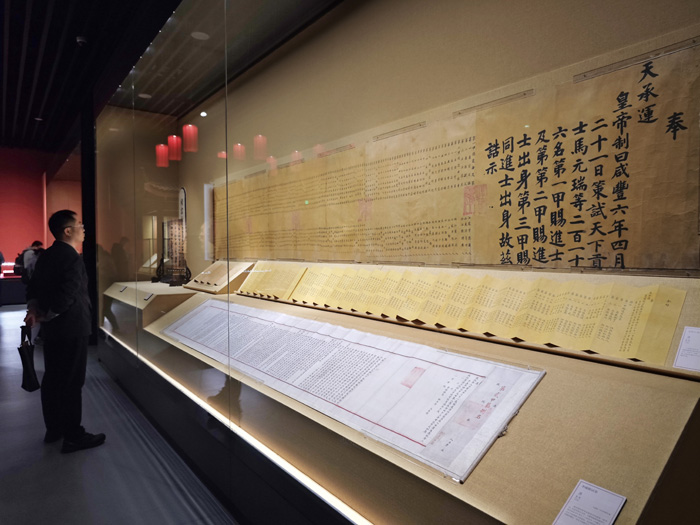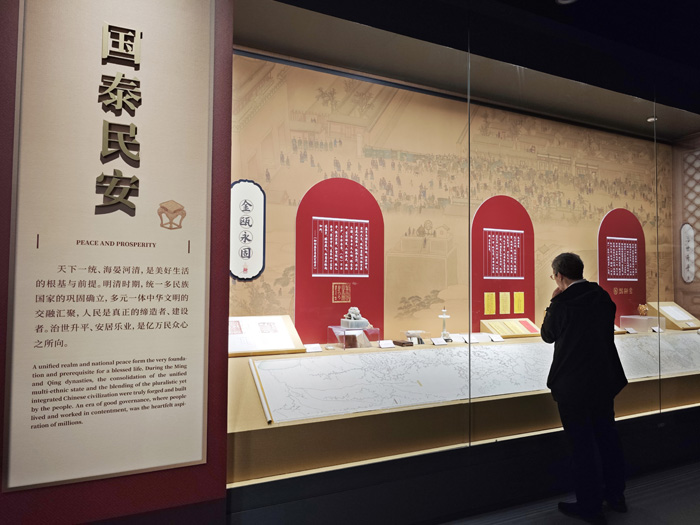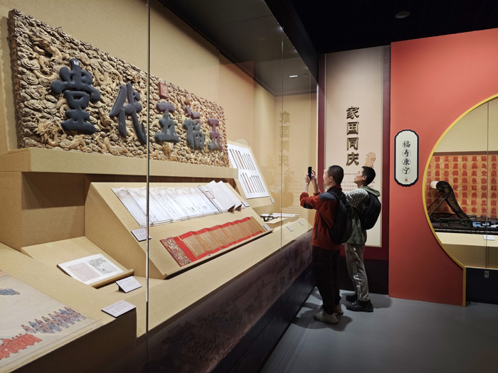 展览分为“国泰民安”“人生如意”“家国同庆”三个单元,采用“档案+文物”合璧式的叙述方式,精心构建金瓯永固、治世升平、四时风物、物阜民康、凤凰于飞、蟾宫折桂、金兰相契、良辰美景、福寿康宁、文脉绵长共10个“瑞意”主题,通过“同一事件、同一空间”探寻档案与文物之间深厚的内在联系,讲述档案与文物背后的历史故事。
